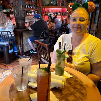 After a few more attractions (including Runaway Railway - the theme song of which Ellie has been singing relentlessly in preparation for this trip) it was time to exit the park via the Disneyland Monorail for some lunch. Weād managed to score some highly sought-after reservations for Trader Samās Enchanted Tiki Bar, a small and elaborately decorated tropical-themed bar/restaurant located at the Disneyland Hotel. This was something weād very much been looking forward to and it had taken some very speedy fingers to get this booked - you have to make a reservation via the Disney app 60 days in advance to the second, as all bookings for the day disappear in a matter of moments.