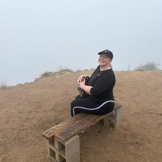 After about an hour of steady climbing, we finally reached the top of the trail, where the back of the Hollywood sign should come into view… but the mist was so thick we could see nothing. Nothing! We plonked ourselves on a solitary bench and rested for a while, dew settling in our hair, hoping to catch a glimpse of what we came here to see. More hikers steadily joined us, and we learned that the LAPD weren’t here to guard the sign, but to retrieve and arrest a man who had perched himself on top of the “D”! That’s not a euphemism, it’s literally where he was. The assumption was that he was protesting against Hollywood itself. As the mist continued to roll through, it occasionally cleared enough to give us a view of the sign, which was very thrilling and much larger than we had pictured, but also of the man on the “D”! The police were gathered below him as he shouted “HOLLYWOOD! CRYPTO!” every so often.