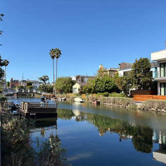 Having satisfied ourselves that we weren’t going to buy a tasteless novelty t-shirt or get a ‘marijuana consultation’ it was time to head inland. This is where the vibe of Venice completely changes to pretty brightly coloured houses and trendy cafes. We were there to explore the canals that give the town its name - a whole series of shallow interconnected waterways crisscrossed by steep wooden bridges. It was peaceful, green, shady and quiet, much more Ellie’s vibe. We had a great time exploring the area and imagining what life would be like to live in the area, each house in the vicinity faced the water and almost every one had some kind of small boat tied up outside.