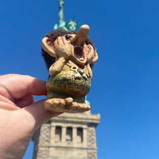 From the museum, it was a short walk around to the front of the statue. We sadly hadn’t been able to get tickets to go inside and up into the crown (much to my relief and Barry’s disappointment), but it was amazing to see her in her full glory, bathed in sunlight. We ambled slowly through the crowds, taking photos and enjoying the views of the city. Henning felt he was much more magnificent than Lady Liberty. I think they’re both lovely.